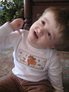 I, of course, waited until the Tuesday before Thanksgiving to try and find Cooper a shirt. The Toggery here in Little Rock had one boy's shirt left...in a size 24 months. It was 30% off and they promised I could return it if it didn't fit, so I got it just in case. And it fit!! Yay!!